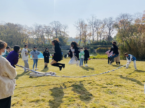 到达目的地后,两位小导游非常细心的为同学们强调了注意事项,还给同学们一一介绍了东湖磨山景区的各个构成部分。随后,在有序组织下,全体同学开展了团建活动,同学们积极参与、竭尽全力,充分锻炼了大家的团队意识。在建立了合作意识后,同学们又认真地完成了旅游接待业的相关情况调研活动。